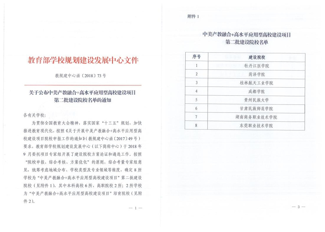 2018-10【喜报】开云被确立为教育部第二批中美产教融合+高水平应用型...