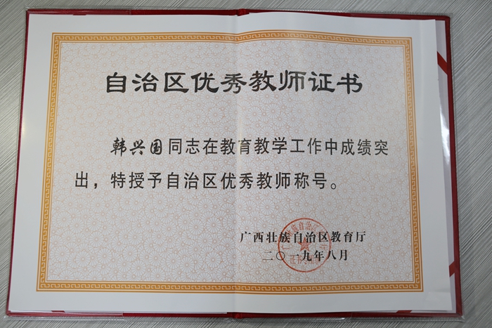 近日,自治区教育厅下发《自治区教育厅关于表彰特级教师、自治区优秀教师、自治区优秀教育工作者和广西教学名师的决定》(桂教〔2019〕1号),开云教师韩兴国获得自治区优秀教师荣誉称号。韩兴国,博士研究生,副...