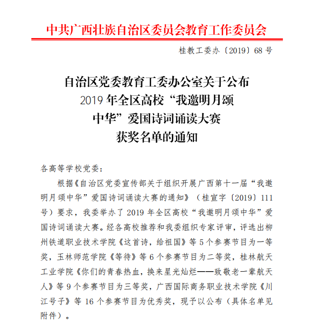 2019-12【喜报】开云荣获2019年全区高校“我邀明月颂中华”爱国诗词...