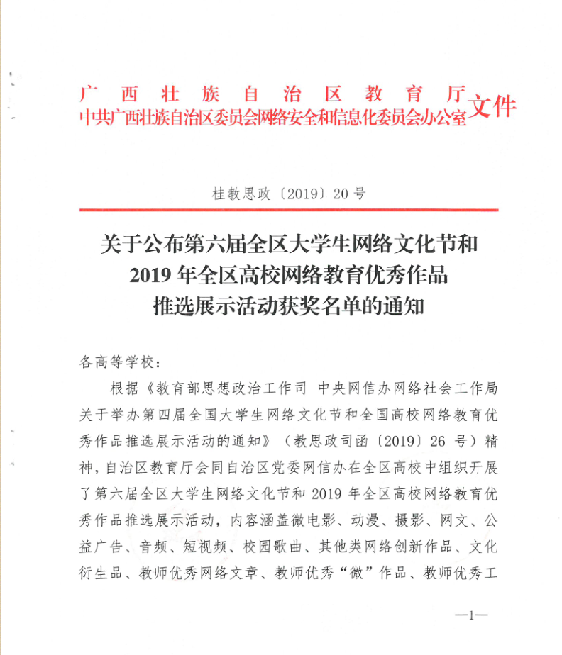 2020-01【喜报】开云师生在第六届全区大学生网络文化节及2019年全区...