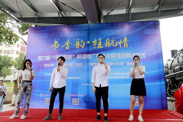 现场还发布了“2018校长书单”阅读书目“桂航荐阅2018”图书榜单,向阅读推广志愿者代表颁发了聘书,向朗读嘉宾颁发了颁发“朗读者”证书,广西师范大学出版社和“新三届”嘉宾向学校捐赠了共计三万元的新书。