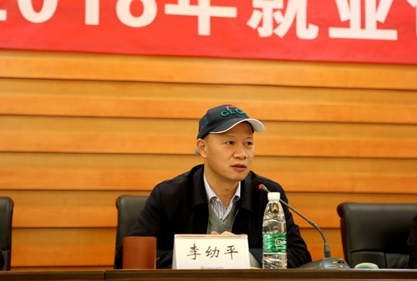 李幼平作重要讲话,在对学校2017届毕业生就业创业工作所取得的成绩表示肯定和祝贺的同时,他还就2018届毕业生就业创业工作提出了三点具体要求:一是,全体教职工应提高就业创业工作的重要性认识,熟悉学校对就业创业工作的整体部署,加强全校各部门单位的联动性,共同努力帮助学生就业。第二,就业创业工作应建立品牌意识,加强校企合作多种平台的构建。第三,增加对就业工作的人财物投入。切实做实、做好毕业生就业工作,努力做到让学生家长、社会和用人单位满意。他强调,2018年是落实学校“十三五”规划的关键之年,毕业生的就业质量事关学校的社会声誉和影响力,责任重大,任务艰巨,希望全校上下能高度重视,齐心协力,圆满完成2018届毕业生和全校毕业生就业创业工作,为全面推进区域有鲜明特色、行业有重要影响的地方应用型高水平大学建设贡献自己的才智和力量。
