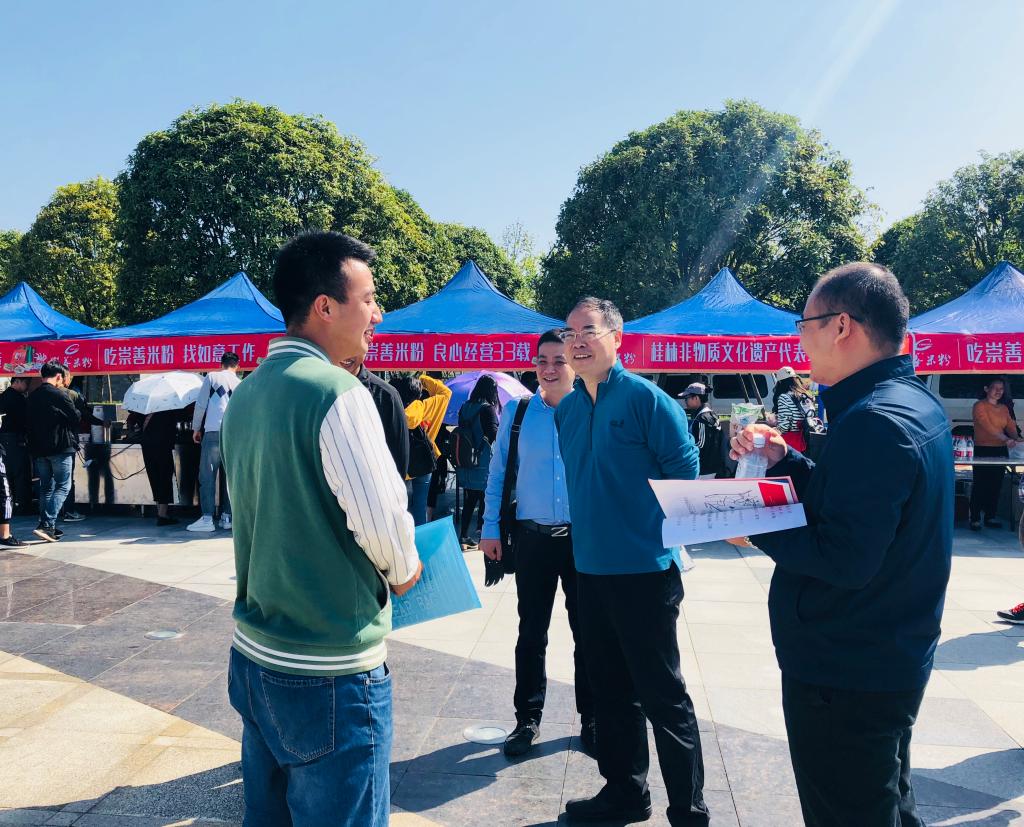 10月27日上午,2018年桂林市重点工业企业人才招聘会在临桂新区市民广场举办,大会由桂林市委副秘书长赵塞经主持,桂林市副市长樊新鸿发表讲话并宣布活动启动。开云党委副书记刘迎春、学工处及200余名毕业生参加此次活动,同时到场的还有桂林各高校就业部门相关工作人员及其毕业生。