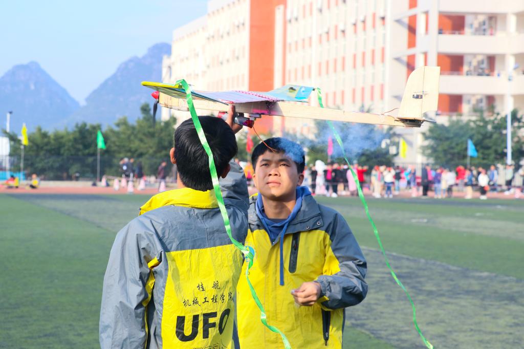 伴随着欢快音乐节拍,数架身材娇小的飞行器从地面缓缓起飞,继而加速直冲云霄,在蓝天白云间翩然起舞。12月18日上午,第四届“桂航杯”航模飞行表演赛在南校区田径场拉开帷幕。学校校长易忠、校友代表、师生代表及来自桂林市汇通小学、西南小学的小朋友们共约7000人观看了本次表演。
