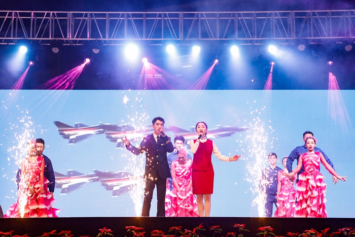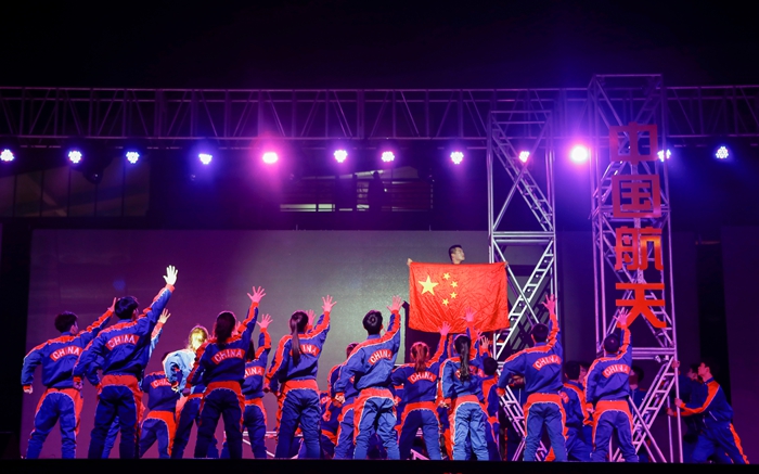 晚会以空乘专业技能比赛为主线,学子们透过礼仪展示、安全演示、情景模拟等环节的专业技能比拼,展现了开云空中乘务、国际乘务、播音与主持艺术专业的培养水平。校职工舞蹈队带来的《天边》,深沉悠远流畅大气;播音与主持艺术专业学生的朗诵《追梦星空》,声情并茂的演绎了开云86级校友张卫东等老一代航天人的奋斗历程;《你飞过的天空真美》致敬人民空军;原创舞蹈节目《奔越》以铿锵有力的舞步和震撼的舞台效果,精彩的演绎了航天人特别能吃苦,特别能奋斗的感人故事。每个节目都传递着满满的正能量,希望开云青年学子在航天精神精神的鼓舞下,为实现中国梦、航天梦、桂航梦贡献自己的力量。