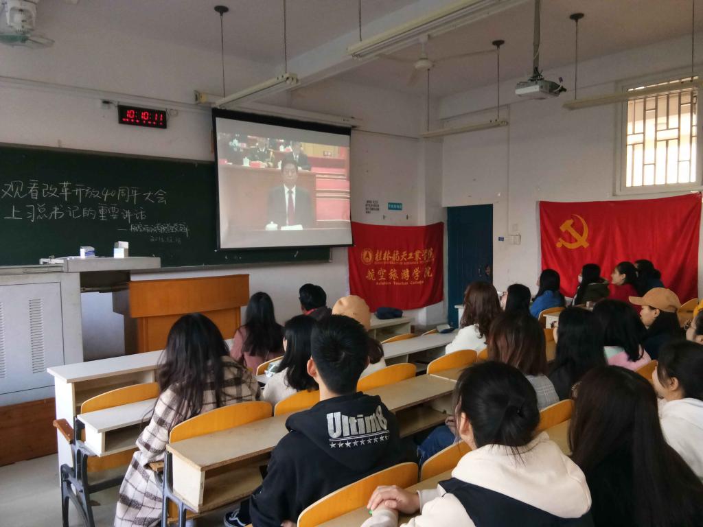 观看中,师生代表聆听了习近平总书记的重要讲话、了解学习了100名“改革先锋”的先进事迹。改革开放四十年来取得的伟大成就让大家深受感动和鼓舞。大家纷纷表示,作为改革开放这一伟大创举的受益者,深切感受到了四十年来国家经济建设和人民生活的巨大变化。今后将继续以昂扬向上的斗志和奋发有为的精神状态投入工作、学习之中,为桂航建设贡献力量。