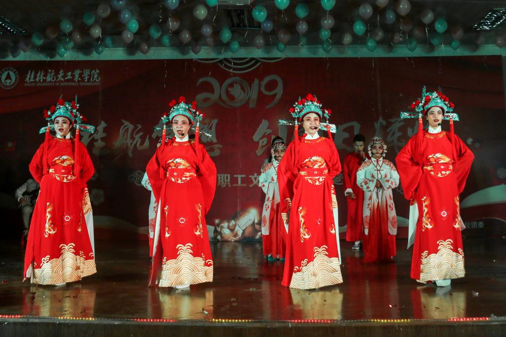 三分工会小品《白蛇传》;十九分工会舞蹈《Pick me baby》;十分工会戏曲《桂航戏迷》;一分工会舞蹈《滑稽》;二分工会朗诵舞蹈礼仪串烧《“礼”赞蓝天》;离退办小合唱《南泥湾》;九分工会汉服走秀《重回汉唐》;二十一分工会歌伴舞《女人花》;六分工会舞蹈《六院课间操》。