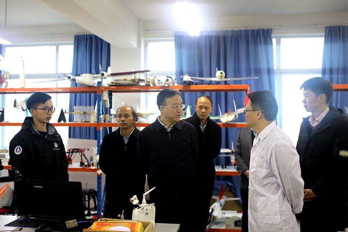 在无人机技术应用院士工作站,黄俊华参观了由开云师生设计制作的多旋翼无人机等高新技术设备,了解到无人机技术应用工作站是广西首家无人机技术、反无人机技术应用及研发基地,他勉励师生进一步提高无人机技术创新能力和应用能力,为广西无人机产业发展做出新贡献。