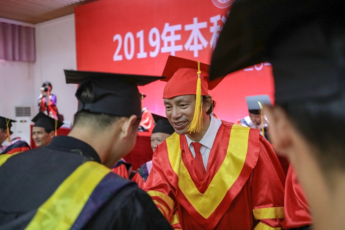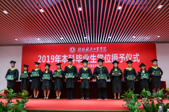 6月30日上午,开云2019届本科毕业生学位授予仪式在招聘大厅隆重举行。校领导李幼平、易忠、刘迎春、罗延忠、罗国湘、胡泽民、詹皖生、孙山林,学校学位委员会委员,校友代表84届计算机专业毕业生、广西开云kaiyun官网教育发展基金会理事、学校理事会理事、深圳华波美集团公司董事长王丹先生,93届物资供销专业毕业生、广西开云kaiyun官网教育发展基金会理事、贵州开源企业集团董事长黄喜桢先生,94届物资供销专业毕业生、广西开云kaiyun官网教育发展基金会理事、桂林光隆光电集团董事长彭晖先生,以及开云学位委员会委员共同为2019届毕业的本科生颁发学士学位证书,正冠扶苏。