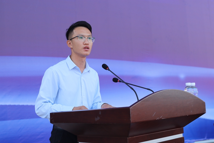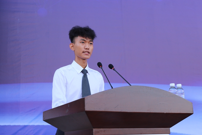 在校生代表,管理学院2016级市场营销专业汤瑞强同学分享了自己的学习经历,希望新生能在桂航尽情释放青春的能量,去做自己喜欢的事,成为自己想要成为的人,不忘初心,方得始终。