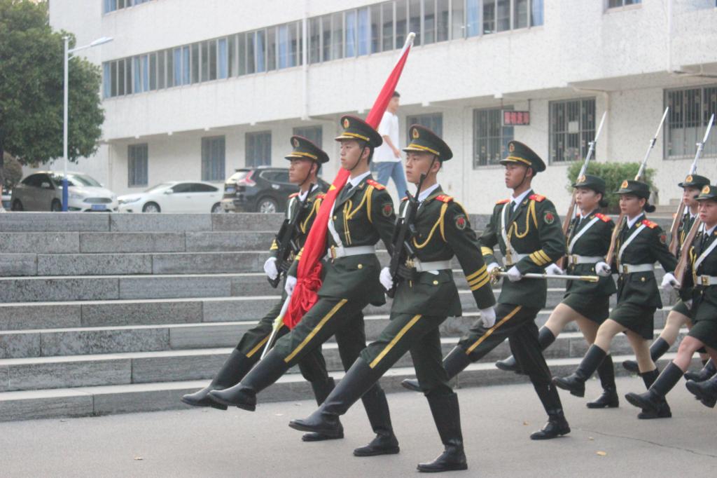 上午7点,国旗护卫队组成的升旗方阵迈着整齐划一、铿锵有力的步伐,昂首阔步护卫着国旗走上升旗台。随着“向国旗——敬礼!”口令声响起,雄壮的《义勇军进行曲》响彻大地。全体师生挺拔肃立,行注目礼,豪迈深情地同唱国歌,迸发出爱我中华的响亮心声,立下振兴中华的宏伟志向。