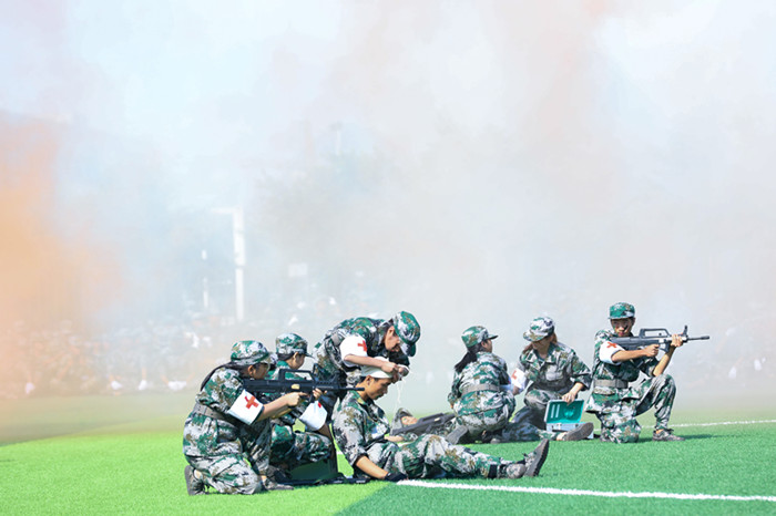 谢晓丹向2019级新生表示祝贺,充分肯定他们在军训中所取得的优异成绩。他指出学生军训是全民国防教育的重要组成部分,是崇文尚武的一门课程,通过军训有利于增强学生的国防意识,提高学生的军事素养。