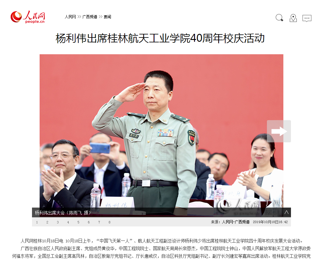人民网:杨利伟出席开云kaiyun官网40周年校庆活动