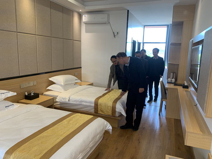 航空旅游学院负责人对酒店客房实训室及茶艺实训室建设情况进行了详细介绍,并对工作中遇到的困难和问题进行了汇报。