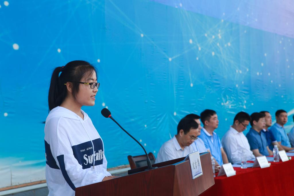 新生代表—计算机科学与工程学院软件工程专业2018级新生申洁雯同学表达了自己初到学校的激动之情,并许诺将从小事做起,从现在做起,严于律己,树立规范意识,遵守学校的各项规章制度,做品学兼优的大学生。