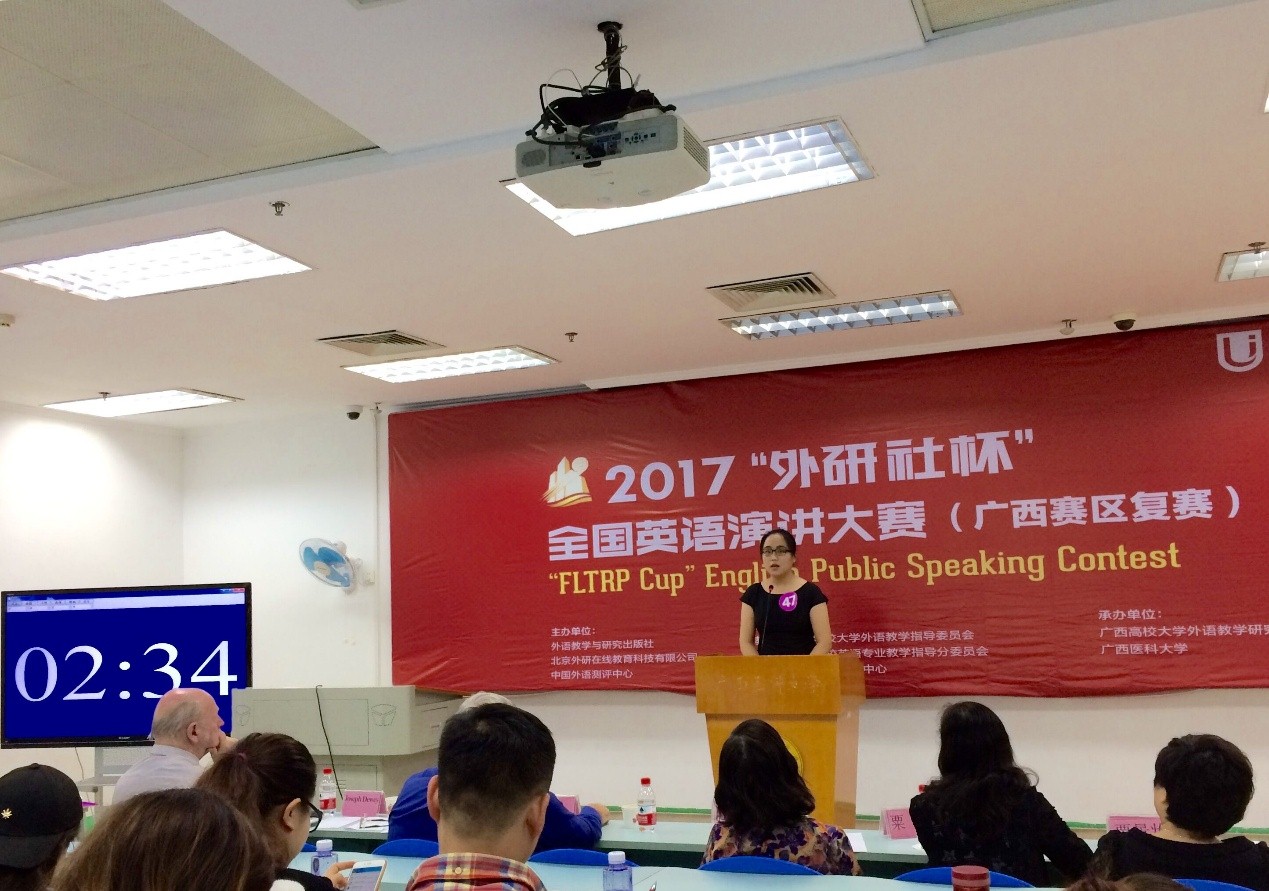 11月5日,2017“外研社杯”全国英语演讲大赛广西赛区复赛在广西医科大学举行。开云2015级商务英语专业学生杨雅婷、韦依贤在此次比赛中喜获本科组三等奖。广西赛区复赛分为本科组和独立院校+专科组,共有来自广...