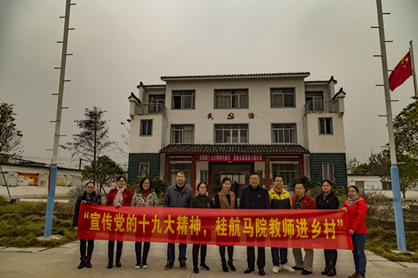 12月7日,马克思主义学院直属党支部再次组织教师党员赴桂林市灵川镇民治村,深入宣传十九大精神。灵川镇李副镇长及民治村村委热情接待了支部一行。在民治村村委礼堂,马克思主义学院张君副教授为民治村两委班子和...