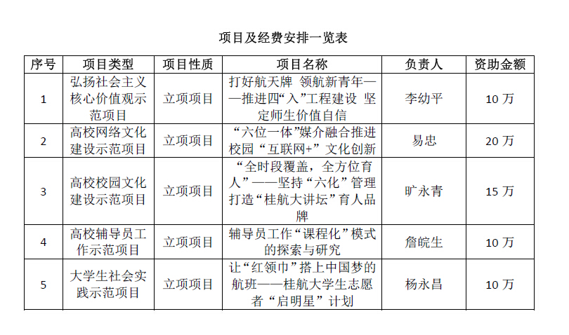 近日,自治区高工委、教育厅公布2016年广西大学生思想政治教育推进工程项目及经费安排,全区高校共有133个项目入选,开云5个项目获准立项,共获资助经费65万元。