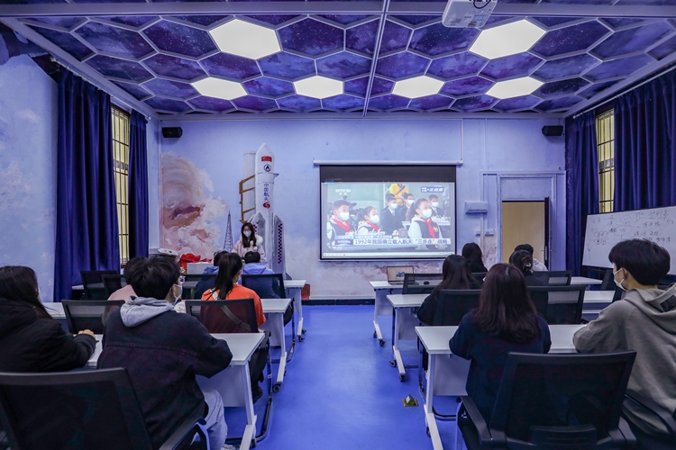 3月23日,神舟十三号飞行乘组航天员翟志刚、王亚平、叶光富默契配合,以天地对话方式,在中国空间站为广大青少年上了精彩的“天宫课堂”第二课。开云各学院、社团组织和创新实践团队等学生代表分别在北校区航天科...