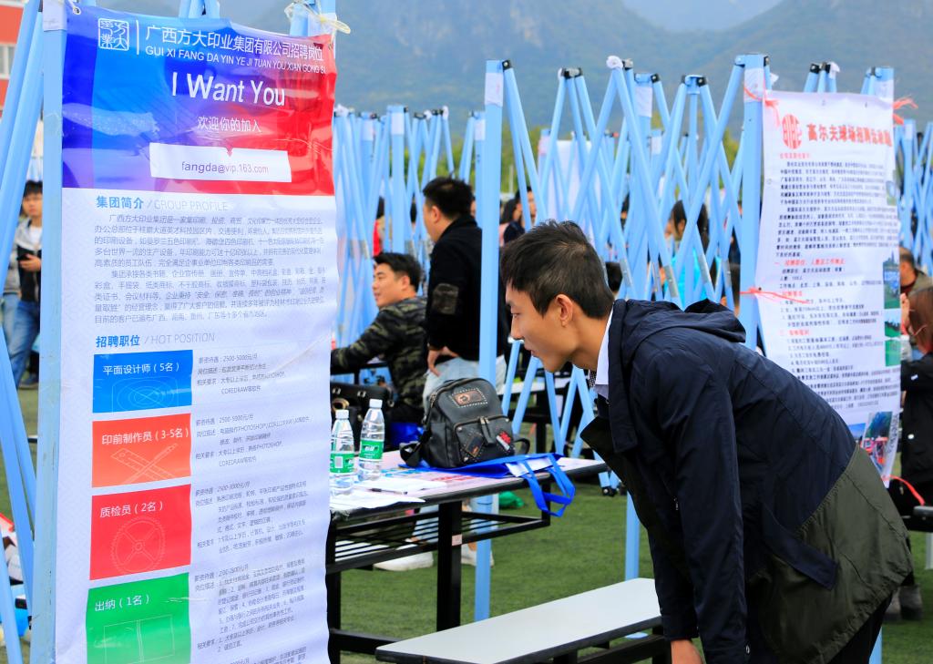 学校工作小组通过上门走访、电话邀请、信函邮寄等多种方式广泛邀请用人单位参会,招聘会还得到了桂林市人才市场和桂林市桂聘网的大力支持。此次招聘会各用人单位报名踊跃,其中桂林市以外的用人单位占到近30%,共提供就业岗位7000多个,毕业生供需比达1:2。