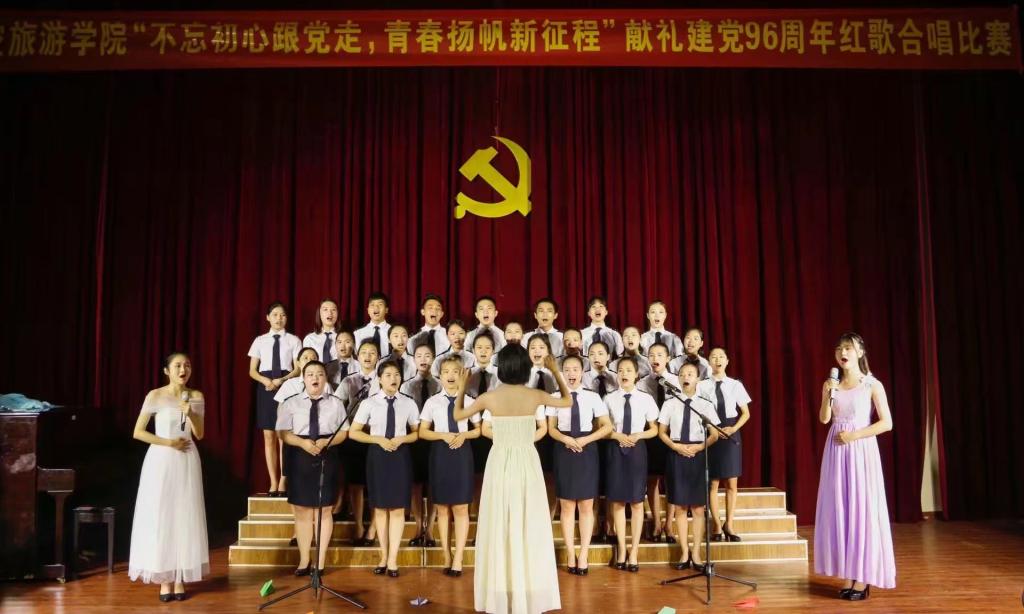 6月22日晚航空旅游学院党总支在电教1举办了“不忘初心跟党走•青春扬帆新征程”献礼建党96周年红歌合唱比赛。比赛在蓝天艺术团精心编排的舞蹈《战火风云》中拉开帷幕,活动现场,各支队伍激情满怀、精神饱满、创意独特、动作帅气、表情丰富,有气势磅礴的《走向复兴》,有中气十足的《歌唱祖国》,也有教师代表的舞蹈表演《映山红》。两个小时的红歌合唱比赛充分展现广大青年师生积极向上的精神风貌和对国家繁荣昌盛的自信、对中国共产党的无限感激、在学生中营造“永远跟党走,信仰代代传”的良好氛围。