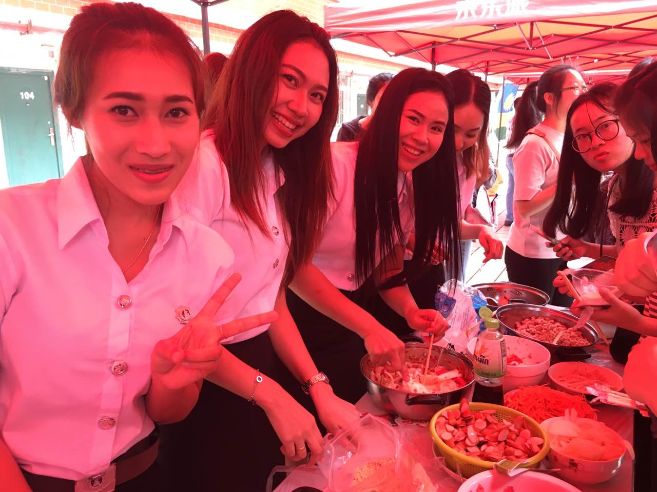 来自泰国、巴基斯坦、印度尼西亚、老挝、也门、喀麦隆、津巴布韦、卢旺达等十个国家的学生代表参加了本次美食节活动。大家认真准备各类食材,精心烹制,其独特的制作方法尽显异国风情,让同学们大开眼界。……泰式酸辣汤、也门Arabic sauce 、巴基斯坦pakora、印尼炸蔬菜团、老挝生拌木瓜、卢旺达炒饭……各种美食应有尽有,色香味俱全,吸引了千余名教师和学生前来品尝。与此同时,各国留学生们热情地为同学们讲解自己国家的饮食文化,大家兴致勃勃,获益匪浅。