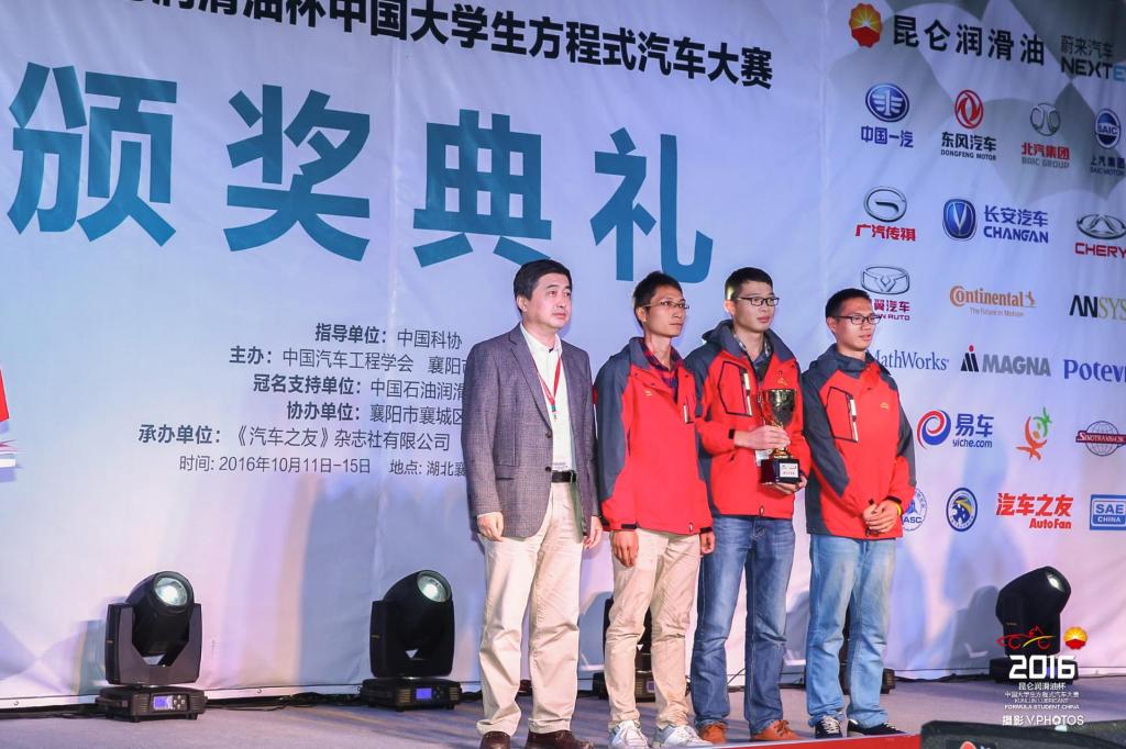 10月11日~15日,由中国汽车工程学会举办的“2016昆仑润滑油杯中国大学生方程式汽车大赛(FSC)”在湖北襄阳梦想方程式赛车场隆重举行。本届大赛共有79所高校的车队报名参加,其中包括:清华大学、浙江大学、上海交通大学、西安交通大学、北京航空航天大学、北京理工大学、同济大学、吉林大学、湖南大学、天津大学等国内知名高校。
