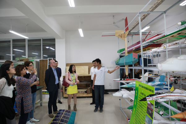 汇报会后,考察团一行走访了机械创新设计基地、微小型飞行器实验室、无人机飞行器实验室、罗克韦尔自动化实验室、汽车综合性能实验室等地,实地考察了学校开展职业教育与培训的基础条件。