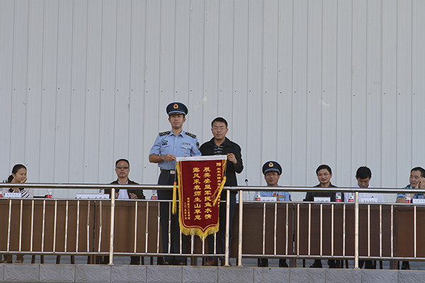 最后,为感谢空军空降兵学院对开云军训工作的大力支持,郝德温代表学校向空军空降兵学院赠送了锦旗。