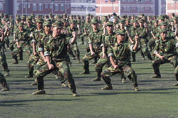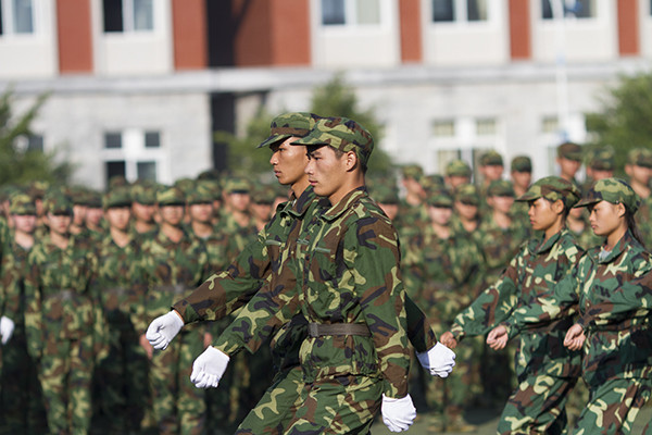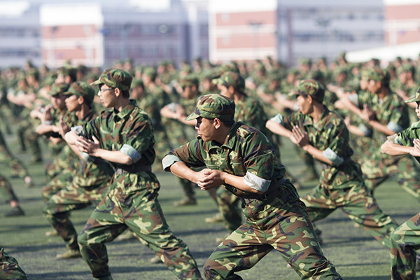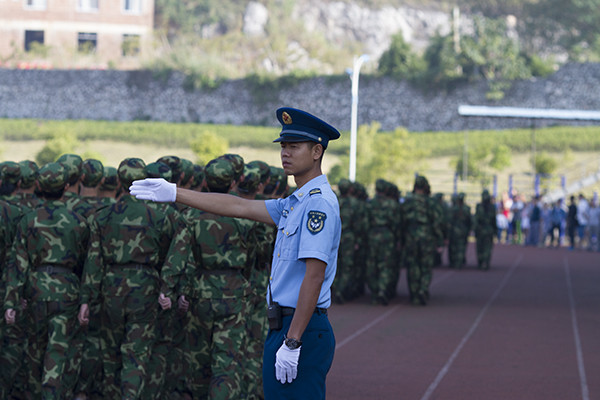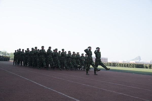 伴随着雄壮的检阅进行曲,41个方队进行分列式表演,2015级4100余名新生迈着正步、高喊口号,精神抖擞地走过主席台,接受学校领导和空军空降兵学院首长的检阅。随后,还进行了男子拳术、女子匕首格斗术表演和教官擒拿格斗,前扑侧倒,倒功和哨反、脊背抗棍打、单手劈砖等警卫技能表演,他们飒爽的英姿、嘹亮的口号、强劲的拳脚赢得了在场师生的热烈掌声。