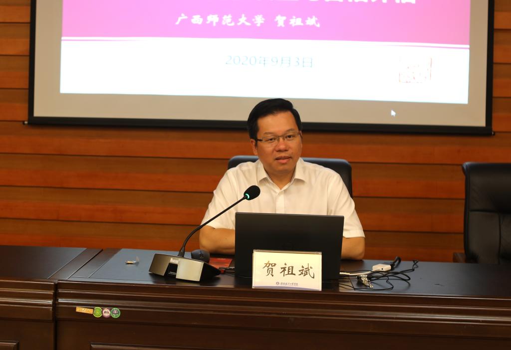 广西师范大学校长贺祖斌教授应邀作开班第一讲——“新建本科高校转型与合格评估”专题讲座。贺祖斌教授从广西高等教育发展现状、新建本科高校转型发展、新建高校教学合格评估三个方面进行阐述。他指出,应用型人才培养模式的转型需要加强学科专业体系、人才培养模型、教师队伍建设、创新创业教育、应用研究创新等五要素的建设。新建高校教学合格评估是确保一流本科教育的“底线”,大家要提高认识、把握机遇;真抓实干,做好准备;平常心态,热情迎评。