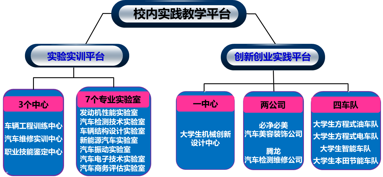 2、构建了以能力培养为中心、“专业实践+学科竞赛+项目训练+创业实践+顶岗实习”五位一体的应用型汽车人才实践教学体系;