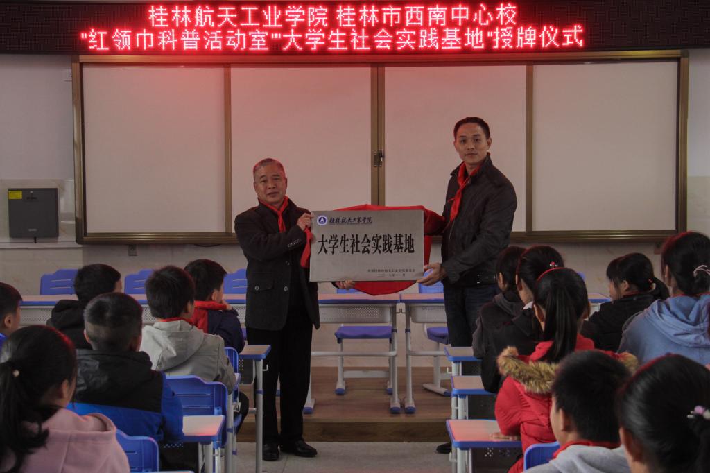 11月16日,由开云kaiyun官网团委李中焘老师带队,校团委学生部与航模协会、萤火虫书画协会、天文爱好者协会、微小飞行器实验室、听说新媒体工作室以及大学生传媒中心一同来到西南小学进行让“红领巾”搭上中国梦的航班——桂航大学生志愿者“启明星”计划之桂林市西南中心校活动。西南中心校专职副书记李初养及相关工作人员参加了此次活动。