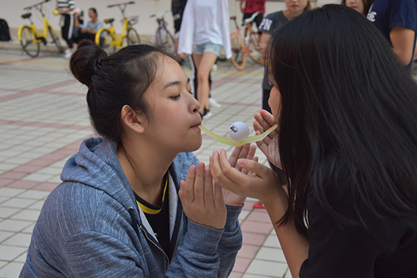 与传统运动会相比,趣味运动会将竞技与娱乐相结合,着重鼓励留学生相互交流、合作参与,充分发挥团体合作精神。本次趣味运动会,留学生共12个团队参与竞赛。活动设置了“团体飞镖比赛”、“团体小勺运送乒乓球”、“投掷网球”、“集体跳大神”、“拔河”等趣味性和协作性于一体的比赛项目。