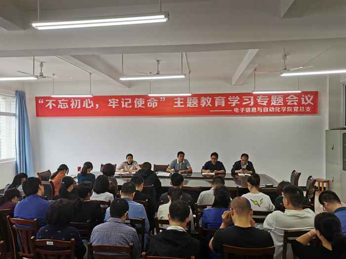 梁国富传达了学校“不忘初心、牢记使命”主题教育会议的精神和要求,并且组织学习了《电子信息与自动化学院开展“不忘初心、牢记使命”主题教育工作安排方案》《电子信息与自动化学院党总支开展“不忘初心、牢记使命”主题教育工作方案》等文件,会议上梁国富阐述了此次主题教育的重大意义,要求各教工党员及各个学生党支部根据学院党总支学习方案,广泛征求各方面意见和建议,查找和解决学院师生“烦心、闹心、揪心”的困难和问题,扎扎实实推进主题教育,并确保取得实效。