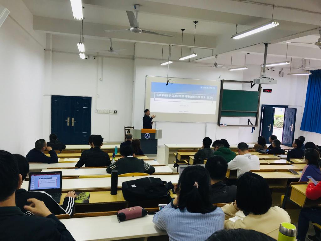 学院负责人指出,自评报告是对学校本科办学工作的全面总结,也是合格评估的核心文件和工作开展的纲领。他从本科教学合格评估指标体系、自评报告解读和合格评估需要关注的重点问题等三个方面展开阐述,针对评估指标体系内涵和基本要求,详细解读了学校办学思路与规划、领导作用、教师队伍、教学条件与利用、专业与课程建设、质量管理、学风建设与学生指导、教学质量等方面内容,以问答形式解读了在合格评估中应当关注的重点问题。