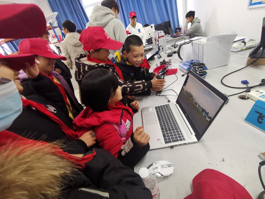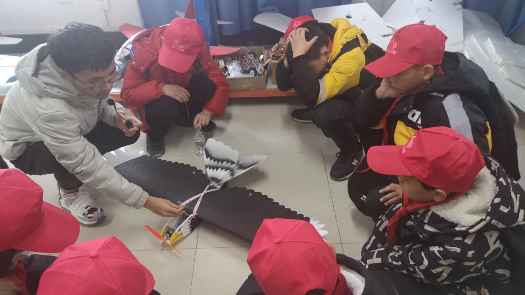 特别是在飞机模型拼装和无人机表演时,小同学们表现出了浓厚的兴趣。“红电先锋”实践团队成员对小同学们进行“一对一”地指导拼装,孩子们看着好不容易完成的模型在地上飞快地前行时,脸上都露出了兴奋的笑容。活动当天,该院无人机遥感遥测实验室的“飞行达人”们为大家表演穿越机花式和三角翼花式表演时,引来了在场的阵阵掌声,无人机空中飞快地穿越和低空悬停的瞬间让同学们不禁惊叹道:“哇——太厉害了!”在“飞行达人”为同学们详细讲解了无人机模型的飞行原理之后,大家才明白“无人遥测”的奥妙所在。