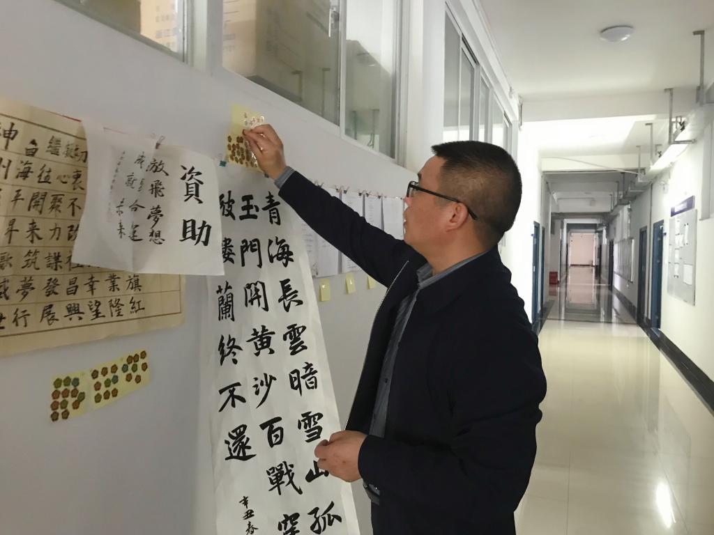 比赛分为硬笔和软笔两种形式,共收到36幅书法作品,内容包括习近平总书记关于扶贫工作重要论述、爱国爱党诗词和学生资助政策等。展览现场吸引了一大批学院师生参观并为优秀作品贴上小红花。最终,2020级材料成型及控制工程专业2班秦浩然以51票获得了软笔作品第一名,2020级机械设计制造及其自动化3班石舒迅以28票获得了硬笔作品第一名。