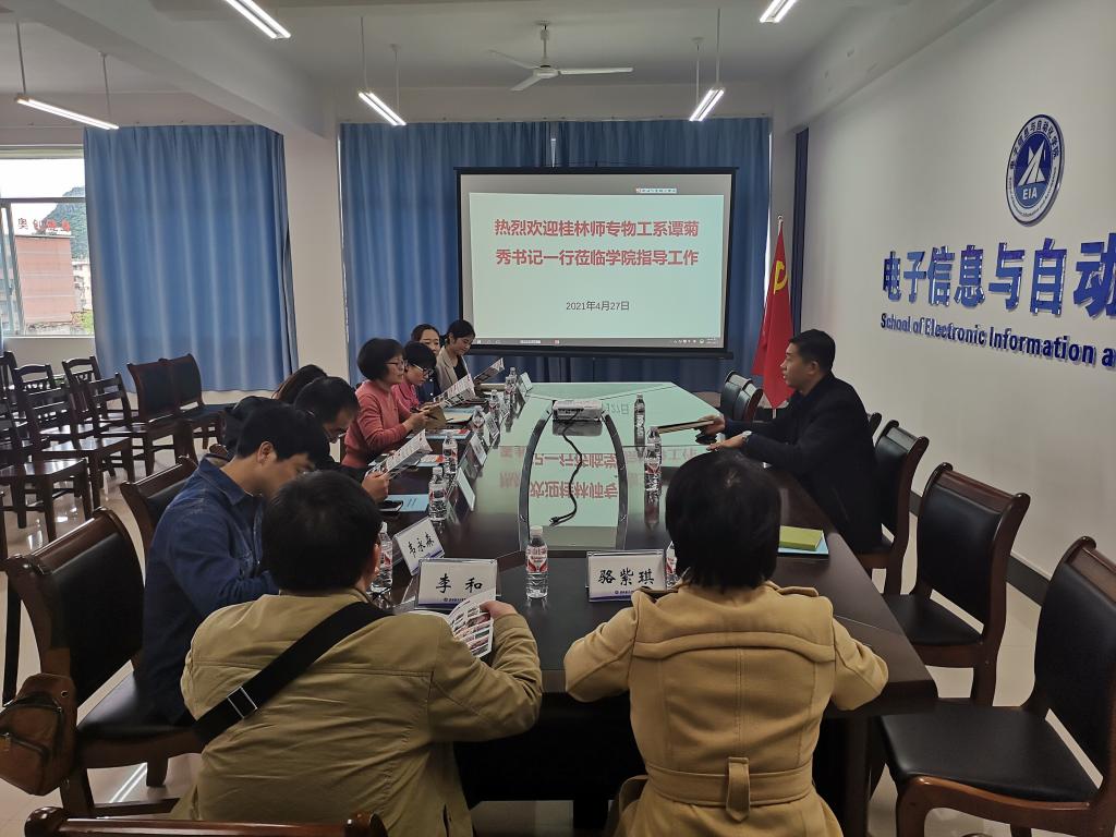 4月27号下午,桂林师范高等专科学校物工系一行10人在党总支书记谭菊秀带领下到开云电子信息与自动化学院开展党建工作调研交流,学院党总支书记及学院相关人员出席并座谈交流。