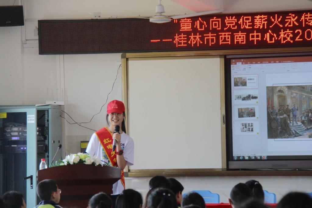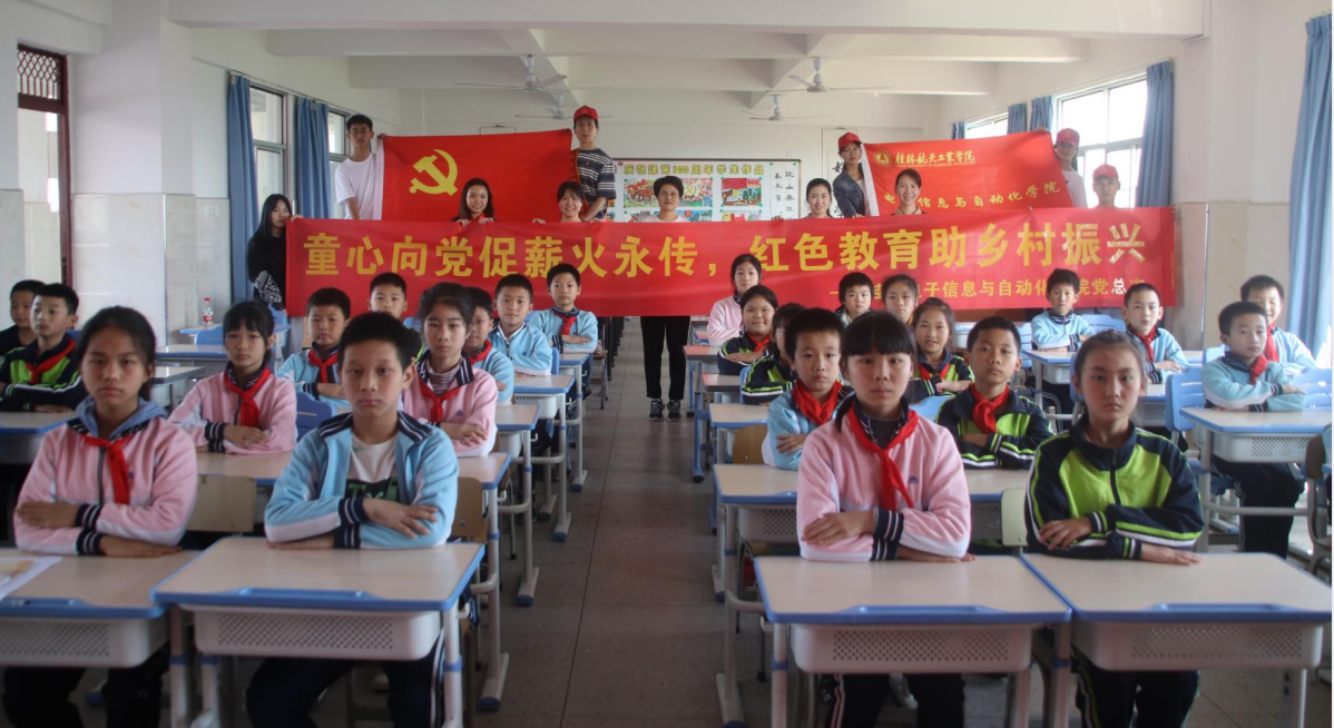 在建党100周年之际,为提升学生党员的实践能力,增强贫困村儿童的爱国意识,4月29日下午,由电子信息与自动化学院学生党支部组成的“红电先锋”党史教育宣讲团,前往桂林市西南中心校开展“童心向党促薪火永传 红色教育助乡村振兴”主题党日活动。