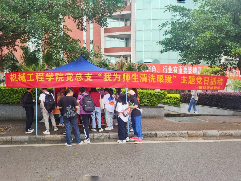 为庆祝中国共产党百年华诞,践行党史学习教育成果。5月6日,机械工程学院在学校南校区巡天楼前开展“我为师生清洗眼镜”主题党日活动。
