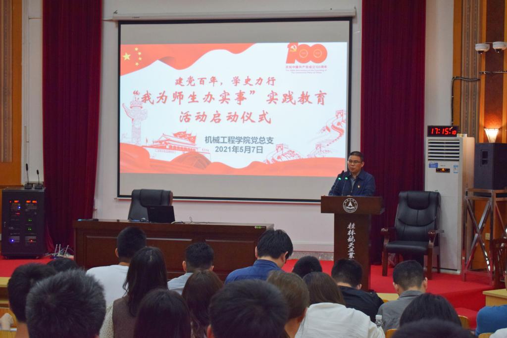 为贯彻落实学校党委党史学习教育工作方案要求,机械工程学院结合自身特色开展了“接地气、有温度、暖人心”的党史学习教育主题活动。5月7日下午,学院党总支在北校区致远楼2108报告厅举行建党百年,学史力行“我为师生办实事”实践教育活动启动仪式。