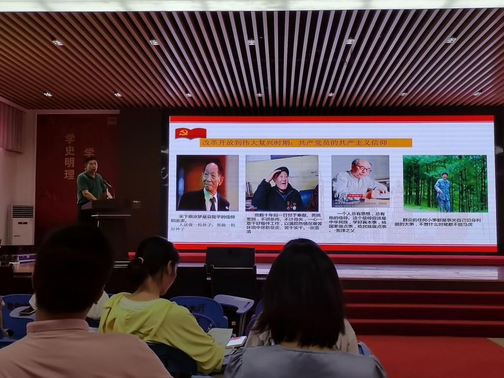 党总支负责人带领毕业生党员回顾了中国共产党在革命时期、社会主义建设时期、改革开放时期涌现出来的先进楷模,引导与会党员思考中国人和中国共产党的信仰,他要求毕业生党员要切实加强自身修养,坚定理想信仰,以先进为榜样,做新时代的奋斗者。