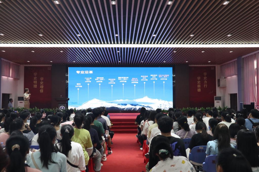 学院主要负责人向2021级全体新生表示热烈的欢迎和祝贺,向所有辛勤培养学生成长的父母和老师们表达了衷心的感谢。她给新生们详细介绍了学校的办学历史和基本情况,以及外语外贸学院的办学定位、专业设置、师资配备、人才培养等方面的情况。她指出,学院始终坚持育人为本的教育理念,不断加强教师队伍的建设,不断改进学院的人才培养模式,不断致力于培养学生全面发展。