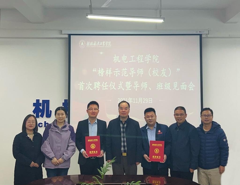 会上,刘迎春代表学校对校友反哺母校教育之举表示感谢,并为两位校友颁发聘书。刘迎春对机电工程学院实施“654321党建工程”、推行“五导引培”立德树人新模式的创新之举给予了充分肯定。他回顾学校发展历程,感怀发展速度;阐述学校当前布局,提示师生要珍惜资源艰苦奋斗;展望学校未来规划,倡导师生抢抓机遇争创标杆为校创牌。他强调,新时代的桂航学子,要以校友导师为榜样,珍惜运用好机会资源,做到脚踏实地、立志高远,树立学无止境、终身学习意识,要主动参与校风学风建设,做到立志考研、全面融入“中国梦”。