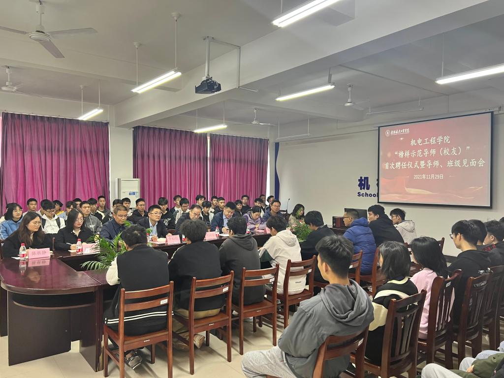 机电工程学院党总支负责人表示,学院决定实施五导引培工程,目的在于整合企业家及校友资源,与师生形成人才培养合力,打造立德树人新格局。他简要阐述了校友“榜样示范导师”的推进思路,向校友导师提出了“六个一工程”建议,并结合学院实际承诺将作出六个方面的努力,他表示将举全院之力抓好工作落实,确保校友导师与班级实现无缝对接与双赢发展。
