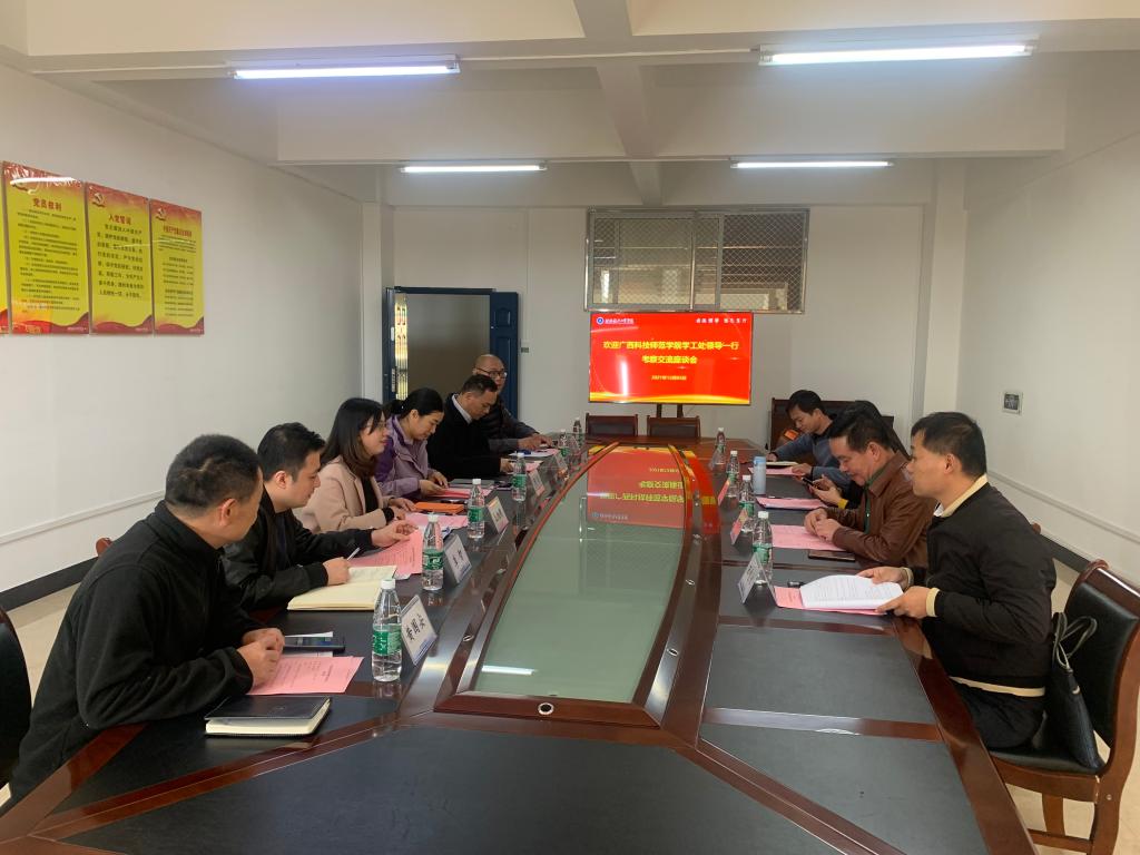 12月2日,广西科技师范学院学工处副处长覃任宁一行来校调研本科教学合格评估工作,学校学生工作处相关负责人在飞天楼519接待并进行座谈交流。
