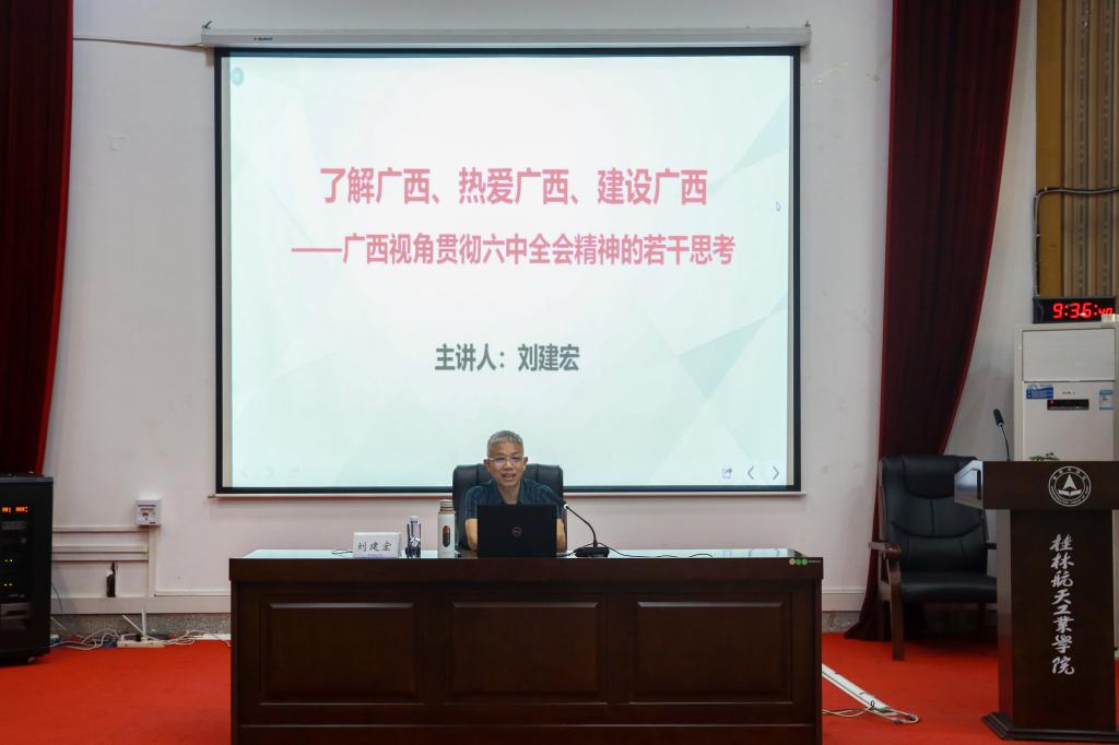 5月25日上午,广西自治区人民政府参事,原广西科技厅党组副书记、副厅长刘建宏应邀莅临开云“桂航大讲坛”,为广大师生作了题为《了解广西、热爱广西、建设广西——广西视角贯彻六中全会精神的若干思考》的专题讲座。讲座由副校长孙山林主持。