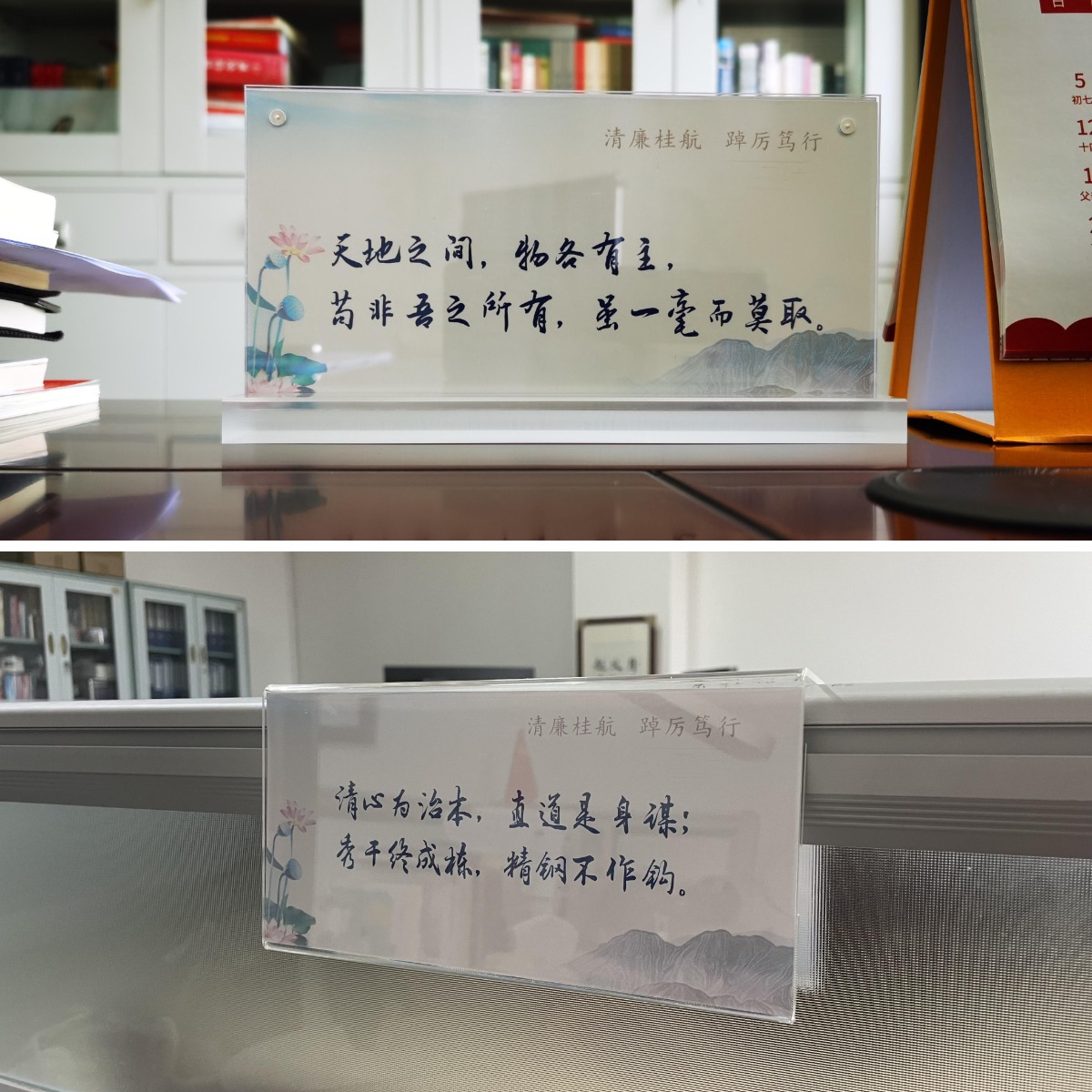 支部各部门根据本单位廉政风险特点,精选提炼出与本单位业务相关的廉洁警示语,制作成警示牌,展示摆放在办公桌面显著位置,确保每一个岗位都有结合自身业务提炼出的相应警示语,起到时时提醒、自我监督、自我教育的作用。通过亮牌活动进一步增强“知敬畏、存戒惧、守底线”意识,促进形成“廉洁教育人人讲、廉洁意识人人有”的崇清尚廉氛围。