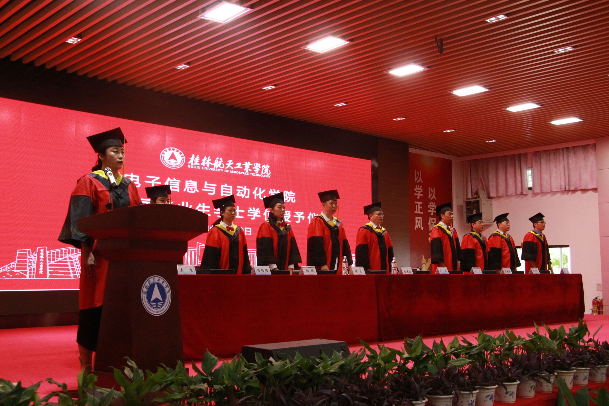 院长嵇建波发表《青春为中国式现代化挺膺担当》的致辞。他说,大家在桂航历经四年的奋斗,迎来了收获的季节。聚是一团火,散作满天星,临别之际,希望学子们无论身在何地,都能牢记桂航人的身份,将“尚德、博学、慎思、笃行”的校训精神传播到社会的各个角落,用航天精神服务广大人民群众。一是“愿以寸心寄华夏,且将岁月赠山河”,作为桂航人,当胸怀祖国、信仰坚定,努力成为堪当民族复兴大任的时代新人。二是“立志欲坚不欲锐,成功在久不在速”,作为桂航人,当志存高远、脚踏实地,坚持不懈的努力,让理想照进现实。三是“星光不问赶路人,时光不负实干者”,作为桂航人,当逐光而行、百折不挠。四是“勿以恶小而为之,勿以善小而不为”,作为桂航人,当心有所畏,方能行有所止,以德为先,方能行稳致远。